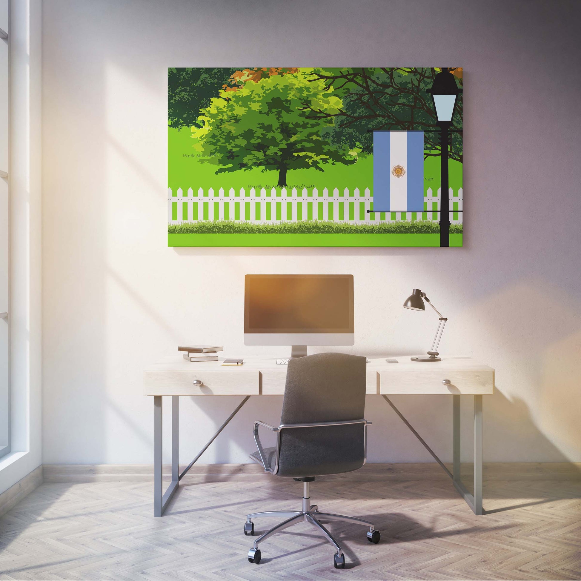 Argentina Trees Street Lamp Canvas Print Framed