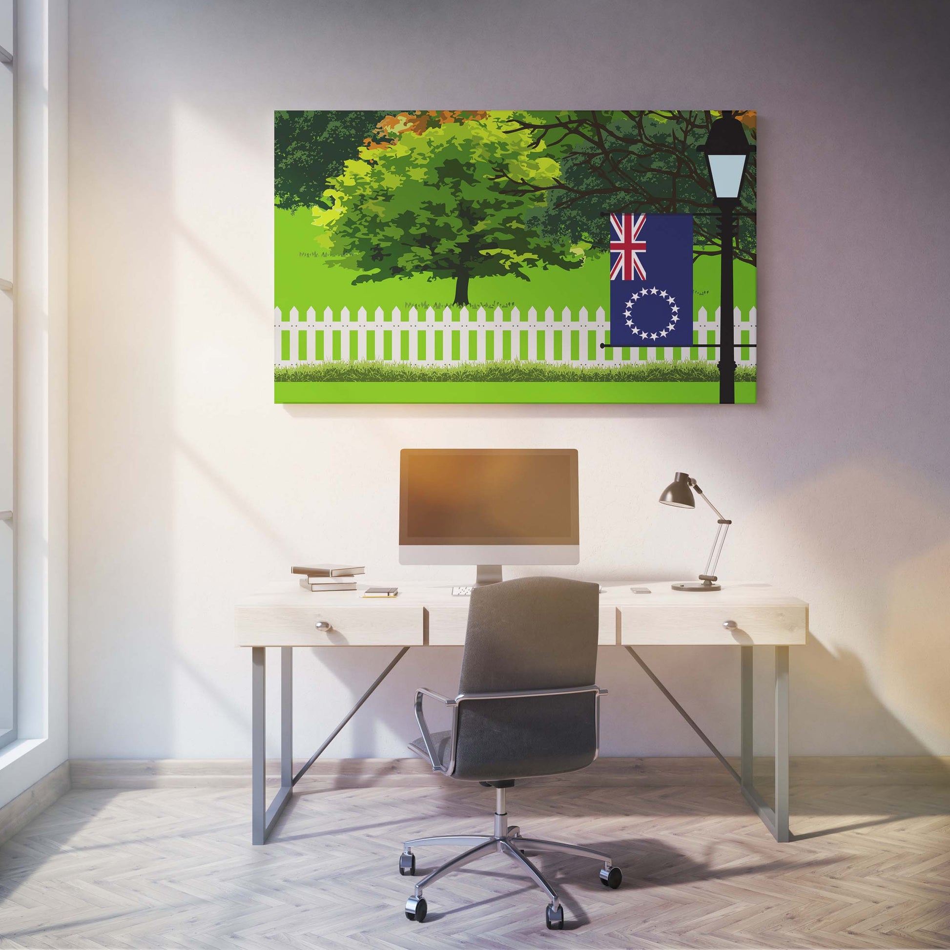 Cook Islands Trees Street Lamp Canvas Print Framed
